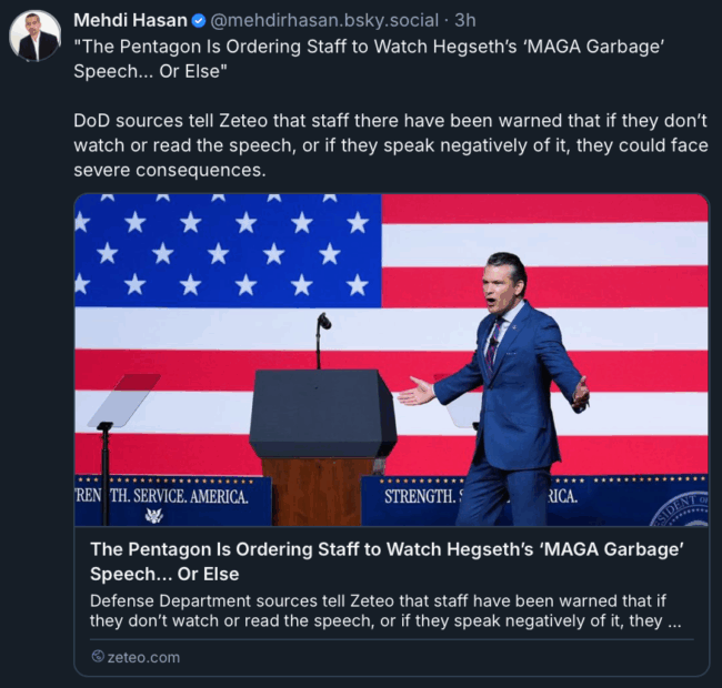 For the deeply compromised Media outlets some things are way too far for them to tolerate. They are collectively rejecting Hegseth’s authoritarian rules about reporting on the Pentagon — even Newsmax (!!) Embarrassing for the Secretary of War On Journalism.