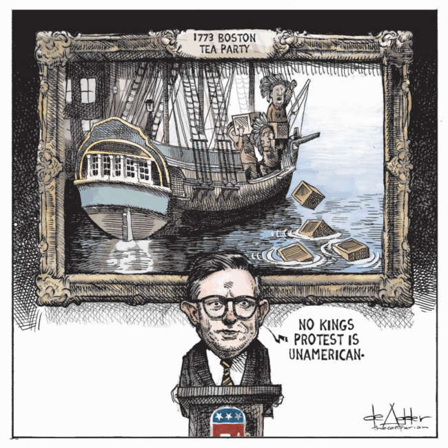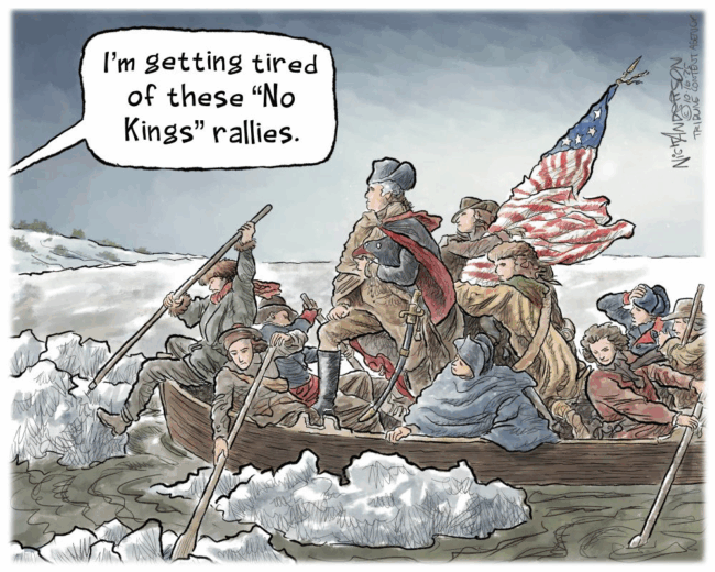 - The Guardian – Republicans mostly silent as millions of Americans protest Trump on No Kings – – – – – (Of course they are, they can’t even defend the actions of their “beloved” tyrant).