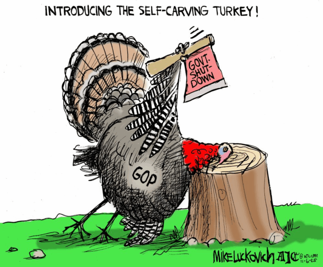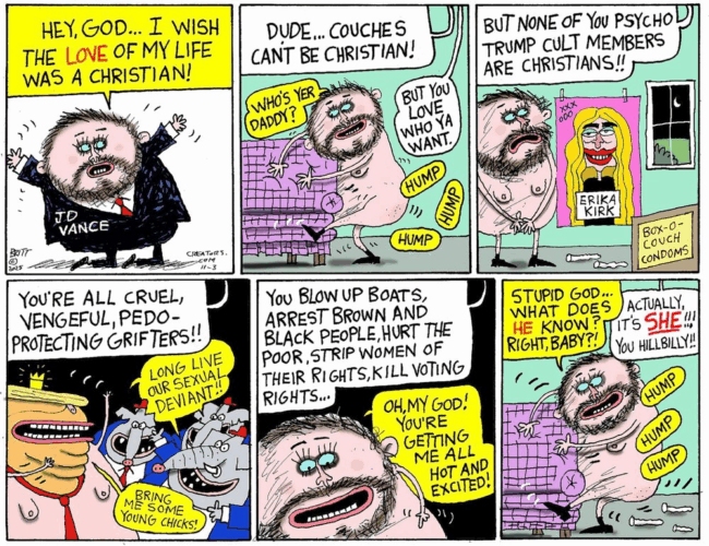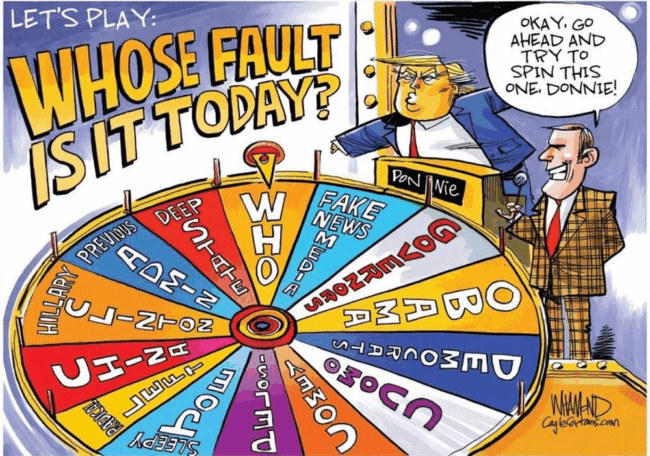 Yes, I’m trying out a new title for this weekly posting. Fear not, I’ve not gone over to the dark side, you will still be taken on a tour of some of the MAGA madness that caught my attention during the past 7 days, and I will also continue to promote the truly excellent work of the political cartoonists who continue to hold to line by mocking the torrent of bovine waste that is being vigorously heaped upon us all each and every day.