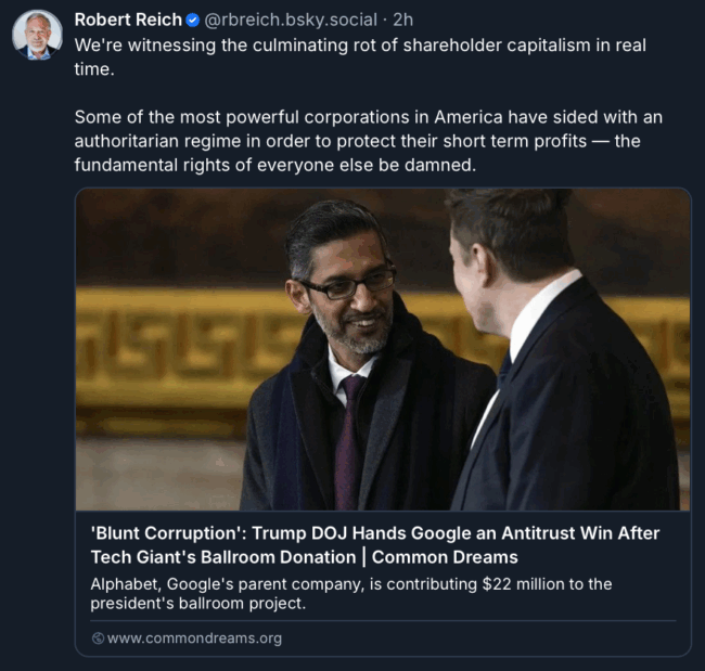 The levels of corruption and corporate malfeasance promoted by this administration is breathtakingly appalling. Pay to play right in the open. He needs to be impeached, convicted, and removed. …