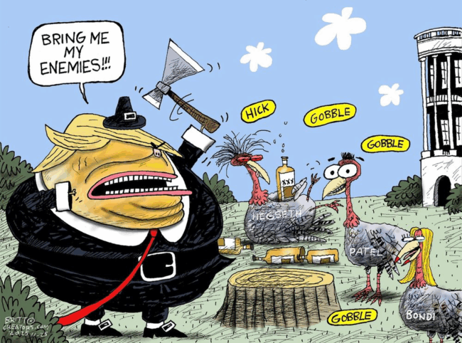 Just chill, sit back, relax, and bask in the warm glow of a few more offerings from some of the very best political cartoonists who have very clearly been inspired to comment upon current events by the time of year.