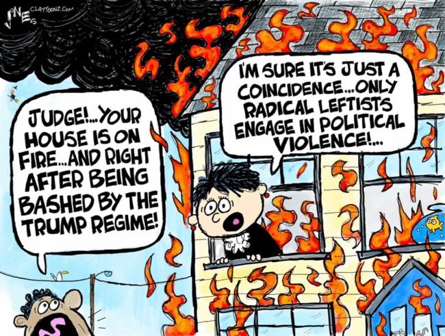 Clay Jones – Surely, it’s just a coincidence that the judge whose house just burned down is the same judge the Trump regime has been attacking with hate rhetoric.