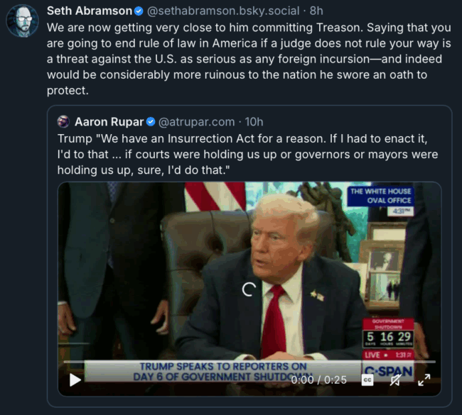 He is pushing very hard to ensure that he can justify using the Insurrection Act …