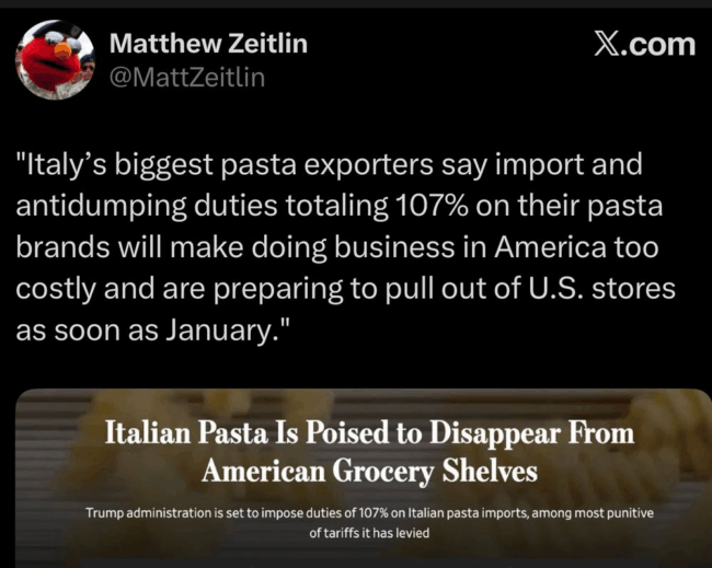 Best to stock up on your Italian Pasta while you still can …