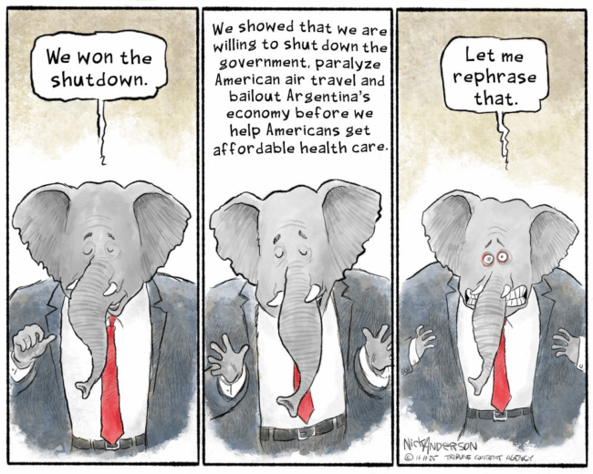 Their argument is that real pain was being inflicted by the shutdown. True as that might be, them caving will result in even greater long term pain and so we got what is in effect an utterly pointless surrender. The promise of a vote at some point is to be honest utterly worthless.