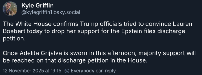 This also happened, and so we have the 218 votes to now force a vote on the Epstein files …