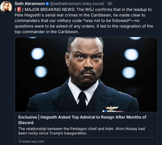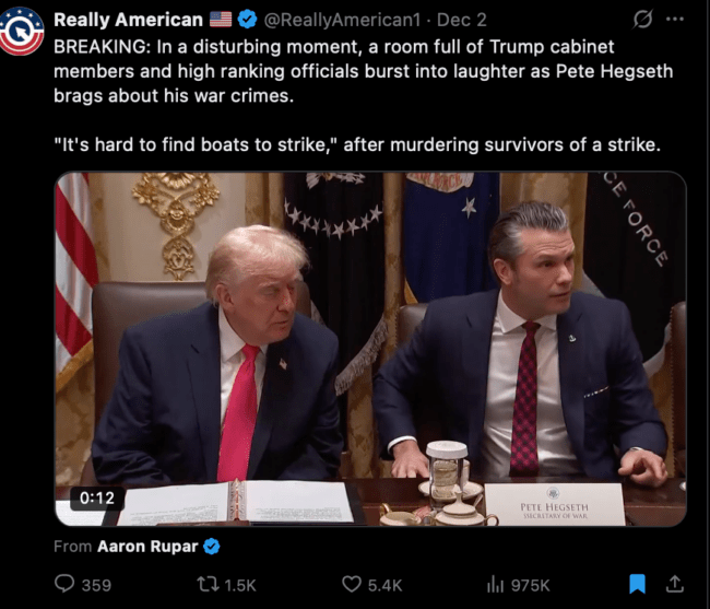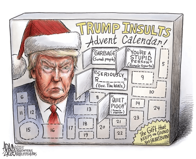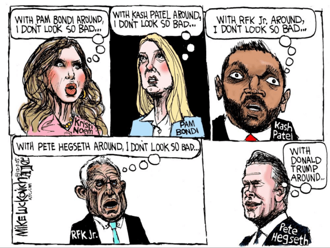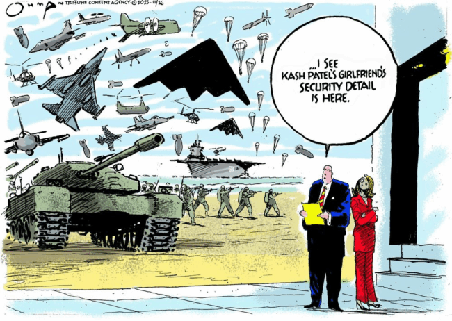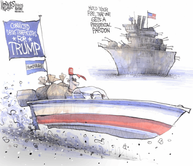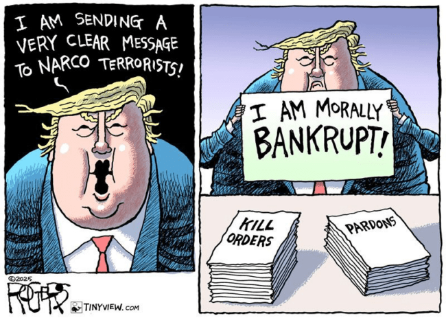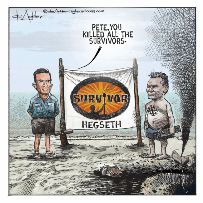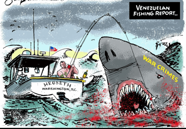 Rob Rogers – “The illegal military strikes on Venezuelan boats by the U.S. military has landed Hegseth and Trump in hot water. Both men are cowardly trying to blame others for their war crimes. #Trump #Hegseth #NarcoTerrorists #Venezuela #BoatStrikes #WarCrimes #WarCrimesHegseth“