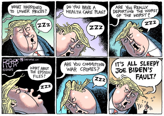 Rob Rogers – Trump has been caught on camera napping in the Oval Office. Metaphor for the job he is doing? Yes and no. #Trump #sleepy #economy #affordability #EpsteinFiles #immigration #ICE #WarCrimes #Venezuela #HealthCare #Obamacare #prices #inflation