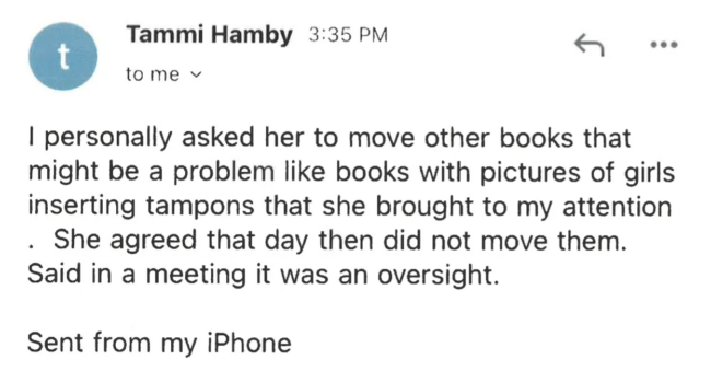 Let’s be even more clear about this. There is no demonstrated harm to children from knowing that same-sex couples exist, but there is demonstrable harm in teaching children that some families are illegitimate or sinful. The only actual harm in play here is coming directly from Tammi Hamby.