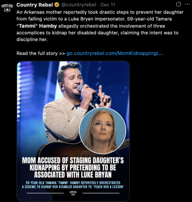 The warrant said the plan was to have someone pretend to be associated with country musician Luke Bryan and communicate with Hamby’s daughter to coordinate a meetup.
